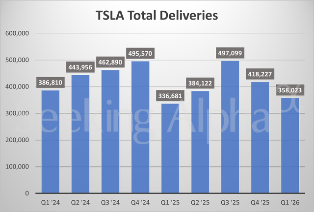数据显示,特斯拉汽车业务第一季度收入同比增长16%,至162.3亿美元。交付方面,特斯拉一季度全球共生产408,386辆电动车,同比增长13%;交付358,023辆,同比增长6%,但低于分析师约36.6万辆的预期,也是自2022年以来表现第二差的季度销量。这一交付成绩仅好于前一年同期,当时特斯拉暂停了Model Y生产,并因马斯克的政治活动遭遇广泛抵制。