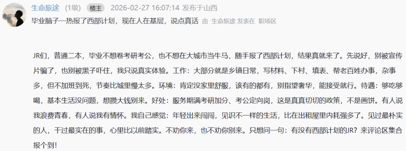 毕业脑子一热报了西部计划,现在人在基层,说点真话