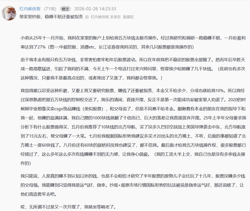 帮家里炒股,稳赚不赔还要被指责