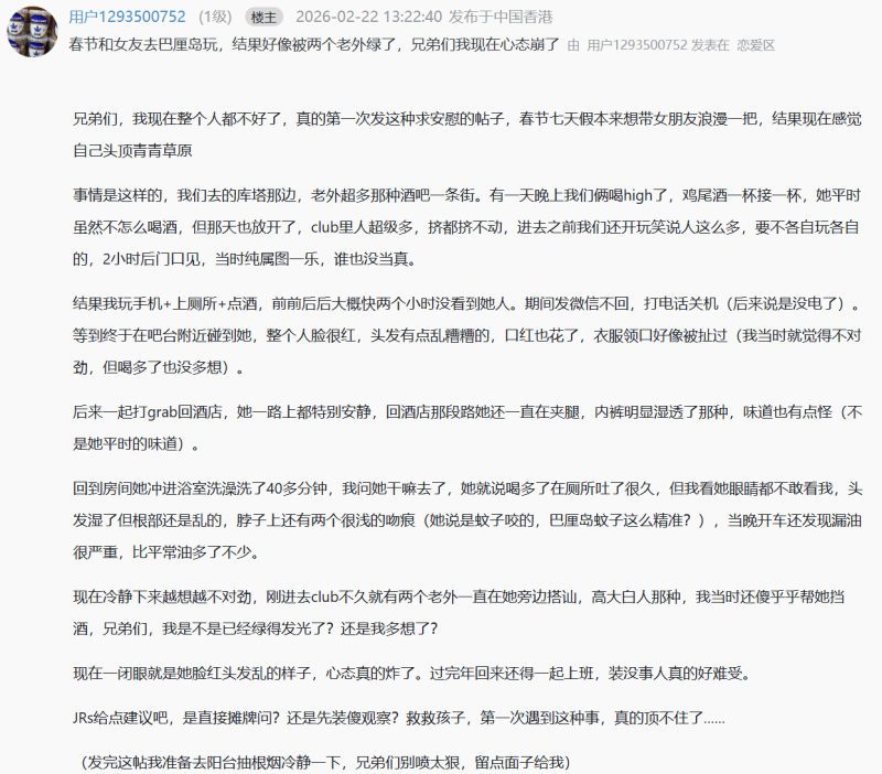 春节和女友去巴厘岛玩,结果好像被两个老外绿了,兄弟们我现在心态崩了