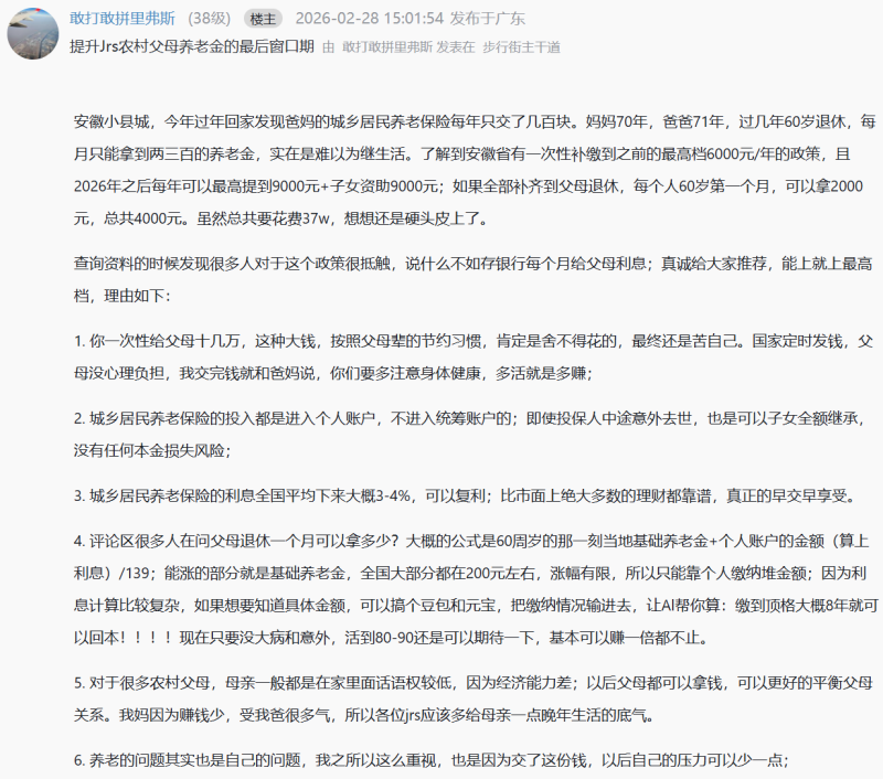 🔥上榜理由:农村父母养老金可以补交啦,来抄老哥作业