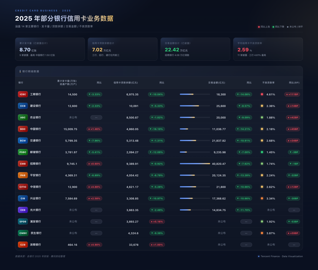 在经济环境变化和部分用户还款能力下降的影响下,2025年各行信用卡业务资产质量承压,不良率总体上行。