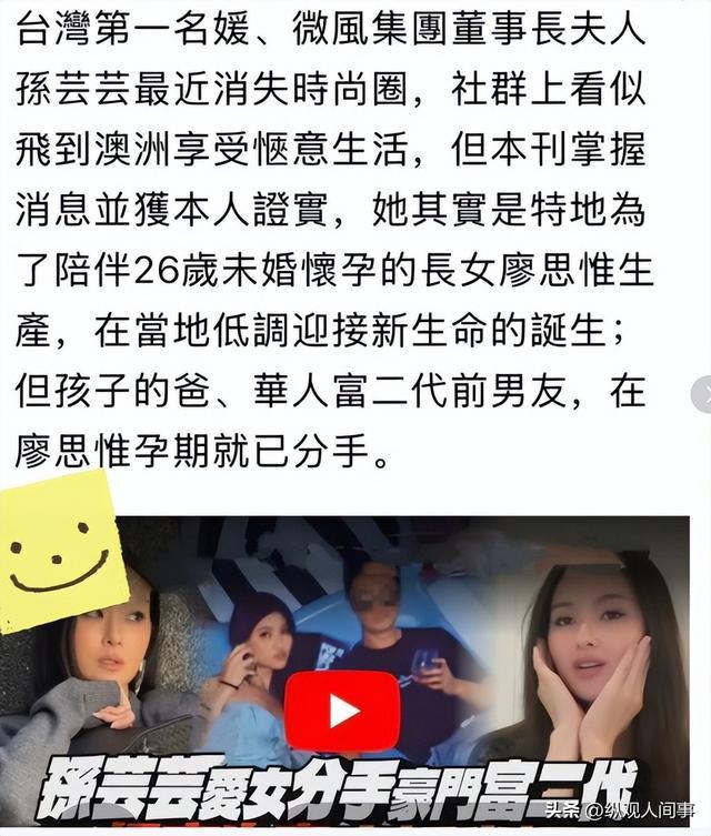 这位被称作台湾名媛天花板的女人,在得知女儿怀孕且男友失联的消息后,第一时间放下手头所有事务飞往澳洲。