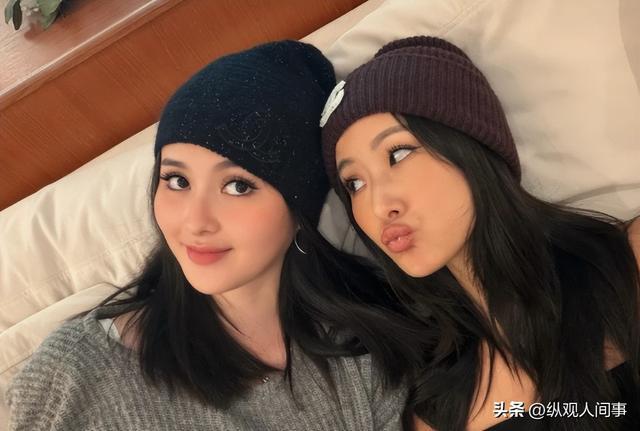 与女儿同框时,丝毫没有妈妈的感觉,反倒像一对颜值出众的姐妹。