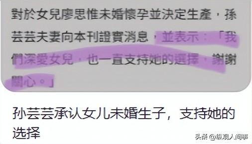 面对女儿未婚生子的选择,孙芸芸没有指责只有支持,台媒求证时,她与丈夫廖镇汉共同回应“我们深爱女儿,也一直支持她的选择,谢谢关心”,干脆利落地回应了所有质疑。